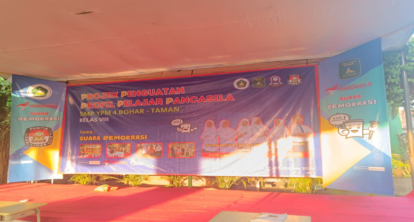 Pelaksanaan Kegiatan Projek Penguatan Profil Pelajar Pancasila (P5) di SMP YPM 4 Bohar Kec. Taman Kab. Sidoarjo dilaksanakan dari tanggal 7 s.d 11 Oktober 2024. Tema yang  diambil adalah  Suara Demokrasi, untuk pengimplementasikan tema tersebut pihak sekolah menyelenggarakan Pemilihan Ketua dan Wakil Ketua Organisasi Siswa Intra Sekolah (OSIS) Periode 2024/2025. Terdapat 3 kandidat calon Ketua OSIS dan Wakil Ketua OSIS yaitu Paslon 1 : Brigita Nachyta Adel Vista (8C) dan Faiz Fauziah Ramadhani (8A), Paslon 2 : Firda Na'imah (8E) dan Nabila Alfiatur Rochmah (8B), dan Paslon 3 : Lailatul Fitria Septiani (8D) dan Achmad Wildan Farid Rizqullah (8E).